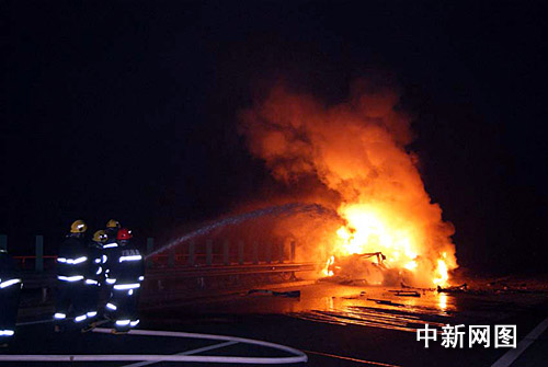 中新網(wǎng)寧波12月12日電(記者 何蔣勇 通訊員 來(lái)明)12日凌晨1時(shí)43分,位于杭甬高速浙江寧波出口不到2公里處發(fā)生一起慘劇,一輛奔馳小轎車(chē)與一輛大型掛車(chē)發(fā)生追尾后撞上公路護(hù)欄,奔馳車(chē)起火燃燒,事故造成車(chē)上兩人命喪火海。