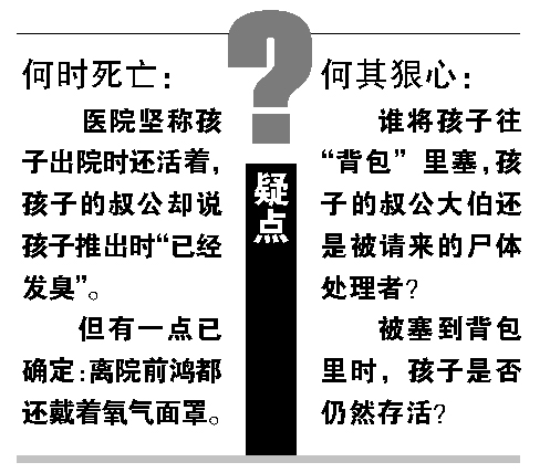 一步步,我們離真相似乎越來(lái)越近,但真相卻越來(lái)越讓人心痛:一個(gè)生死未明的孩子身體“尚柔軟”就被“塞進(jìn)背包”丟棄,而對(duì)于老家廣西新旺村的村民來(lái)說(shuō),這樣的處理卻“不稀奇”“很正!薄