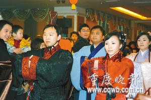 昨中午,在長(zhǎng)壽區(qū)某賓館,一場(chǎng)傳統(tǒng)漢式婚禮舉行。婚禮中,司儀說(shuō)起了文言文,部分來(lái)賓聽(tīng)得云里霧里。