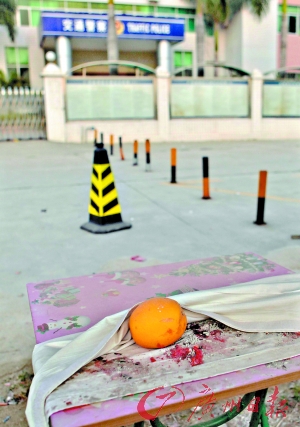 在交警中隊(duì)大樓的大堂里,陳錄生的照片仍然掛在公告欄內(nèi),相片與十幾名“初級(jí)警員”排列在同一行,但職務(wù)一欄已成空白。而在大樓對(duì)面,記者看到陳錄生家屬設(shè)置的“靈堂”仍未撤走,靈堂由一個(gè)藍(lán)色的架子搭建而成,架子下擺著一張小桌子,桌子上還有幾個(gè)水果。桌子旁邊則有一個(gè)爐子,地上還殘留著爆竹。