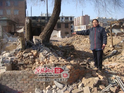 在還沒有簽定拆遷協(xié)議之前,張家口市退休女士民溫春梅的房子,被不明人士砸壞了門窗,派出所在查看現(xiàn)場后要求溫春梅去所里作筆錄,誰知等溫春梅從派出所回來后一看,這次房子竟然倒塌了一半,所有的家具都被埋了進(jìn)去,而剩下的兩間也變成了危房。而當(dāng)?shù)夭疬w辦對此的解釋竟然是:“在清理旁邊垃圾時不小心碰倒了”。11月23日,這樣的場景和解釋在張家口市橋西區(qū)戲劇性的上演。