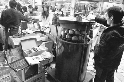 這家攤點(diǎn)的負(fù)責(zé)人李先生說(shuō),他們的烤薯攤點(diǎn)是連鎖店,“這種連鎖攤點(diǎn)在成都有10多個(gè),還有至少5家連鎖店面。在北京、上海、綿陽(yáng)等地還有分店!彼f(shuō),連鎖店老板是個(gè)臺(tái)灣人,使用的是從臺(tái)灣引進(jìn)的烤薯方法,比成都市場(chǎng)上的烤薯技術(shù)都要先進(jìn)。李先生拉開(kāi)烤薯箱,里面擺有幾十個(gè)紅薯,還有個(gè)圓形的溫度計(jì)!斑@是專門(mén)在臺(tái)灣訂制的!