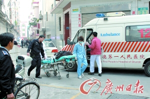 昨日,在順德區(qū)大良環(huán)市北路銀華樓,居民經歷了一個驚心動魄的下午。下午3時45許,一名持刀男子跑進了小區(qū)的車庫內試圖割脈自殺,民警不顧危險赤手奪刀時,雙方展開了激烈的搏斗,一名民警和一名治安員不慎被刀具割傷,隨后一民警一腳踢飛男子手中的刀,將男子制服后送上了救護車。
