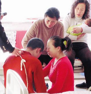 在沈北新區(qū)醫(yī)院婦產(chǎn)科的病房內(nèi),關(guān)某一見到母親、妻子和孩子,就跪在了地上淚如雨下,他的妻子也跪在他身旁,“你好好改造,我會好好照顧孩子,我不會和你離婚的!你把人家撞死了,給人家家庭帶來多大的傷害啊!我還能看見你,可是人家孩子卻看不著媽了!你好好改造吧,不用惦記我們!”關(guān)某的妻子安慰著丈夫。關(guān)某的母親一直邊哭邊捶打著兒子,“家里只有兒子還能賺些錢,現(xiàn)在他進監(jiān)獄了,家里怎么辦?孫子和兒媳婦怎么辦?”