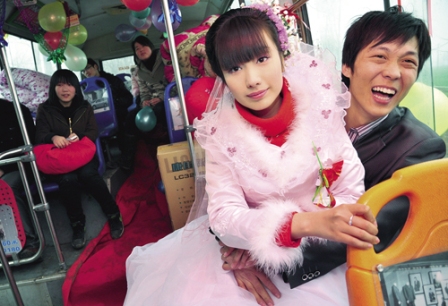 “今天,公司領(lǐng)導(dǎo)安排我來現(xiàn)場(chǎng)向兩位新人表示祝賀,這種方式不僅節(jié)儉,而且很時(shí)尚。”昨天,阜陽市公交總公司黨委辦負(fù)責(zé)人孫九青說。得知鄧輝的心愿后,公司選了一輛嶄新的1路公交車。
