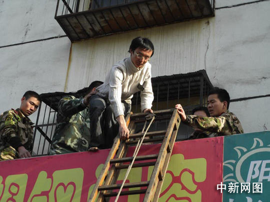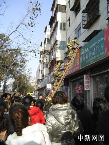 中新網(wǎng)洛陽3月11日電 (記者 賈親親 通訊員 鞏衛(wèi)東 魏鵬)3月10日16時30分左右,河南省洛陽市九都路立交橋附近一居民樓出現(xiàn)驚人一幕:一赤腳青年男子從4樓一窗戶爬下時,被大樓門面房上部的門市招牌阻擋遇險,不停的大呼“救命、救命”,急促的呼救聲驚動了周圍居民群眾。