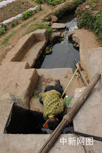 小劉凱告訴記者,受持續(xù)干旱缺水影響,他到村莊到遠處取水已經(jīng)有一周時間了。由于供村里食用的水源在慢慢減少,每天中午放學后,劉凱都要擔著自己的“水桶”到遠地“打水”,往返需要近半個多小時。據(jù)記者上前仔細察看,小劉凱取水之地作為村里為數(shù)不多的水源之一,渾濁的水面難以見底,水源質(zhì)量令人擔憂。