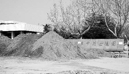 28日,記者接到讀者報料趕到濱州市渤海革命烈士陵園,陵園的正門(南門)、東門、北門三個大門口全都堆放了近三米高的土墻,把大門堵了個嚴(yán)嚴(yán)實(shí)實(shí),人們根本無法正常進(jìn)門。