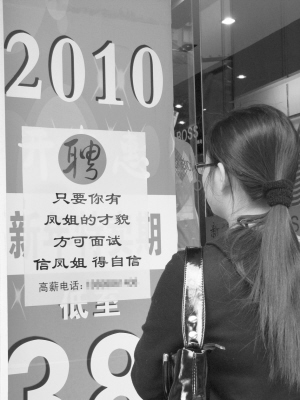 紅川:最近,我路過新村車站的時候,看到一家服裝店門口貼著一張招聘啟事,仔細一看,被雷得全身雞皮疙瘩。上面說:“只要你有鳳姐的才貌,方可面試。信鳳姐,得自信。”