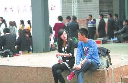 市民吳先生夫婦帶著女兒小倩(化名)和女兒的姨媽一起來到相親現(xiàn)場。4人坐在活動現(xiàn)場后方的草坪上觀看,不時對上場的男士作一番點評。吳先生說,女兒今年22歲,在某民航學(xué)院念大四,今年6月份畢業(yè)!八厴I(yè)后立志要當空姐,擇婿的標準自然不能低。警察好啊,穩(wěn)定!”吳先生的妻子說。