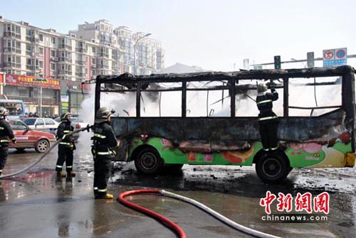 事發(fā)時(shí)車上大約有20多名乘客,所幸全部安全逃生。消防部門接到報(bào)警后,派出兩輛消防車趕到現(xiàn)場(chǎng)。大約30分鐘后,大火被撲滅,但車已被燒成空架。