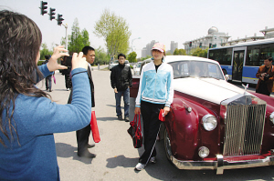 昨天上午9點(diǎn),在南京郵電學(xué)院東門口,許多人見富豪征婚的車隊(duì)開來后,眾多市民紛紛前來圍觀,不少人圍住車隊(duì)不停拍照,感覺他們更關(guān)注的還是那些靚車。