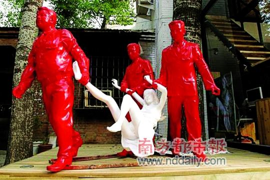 艾未未工作室對(duì)南都記者說(shuō),艾未未并沒(méi)有關(guān)注這一事件,他關(guān)心的是另一件“女子刺死官員事件”。一番了解后記者得知,這件名為“抓小姐”雕塑的真正作者是新銳藝術(shù)家高氏兄弟。高氏兄弟告訴南都記者,這件雕塑是2007年參加一個(gè)聯(lián)展時(shí)的作品,展出后就放在了798他們的工作室前,但2009年5月18日晚突然被798的物業(yè)“偷”走了,雖然早已報(bào)案,但雕塑至今仍沒(méi)歸還。