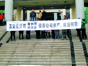 近30名十堰市原五交化有限公司下崗職工,從報(bào)紙上得知,省里下來的巡視小組住在宏正酒店,便于4月9日上午聚集在宏正酒店門口,打出橫幅反映公司改制國資流失和原單位領(lǐng)導(dǎo)涉嫌腐敗問題。