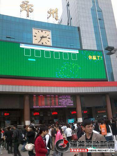 5月16日下午兩點(diǎn)10分左右,鄭州火車站戶外電子屏上意外“上演”紙牌游戲,引起不少人圍觀拍照。