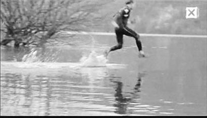 網(wǎng)上文章稱:“3名外國小伙在一個視頻里把中國武俠小說里的輕功 ‘水上漂’展現(xiàn)得淋漓盡致。視頻中,他們在葡萄牙一個湖上賽跑,在水面上奔跑了50多米后才落水。他們聲稱這是一種挑戰(zhàn)地心引力理論的新型極限運動。視頻上傳到某網(wǎng)站后,在短短兩周內(nèi)吸引了超過200多萬人次瀏覽。視頻看起來可信度極高,不少質(zhì)疑它是騙局的網(wǎng)友也不得不承認,它拍得很高明!
