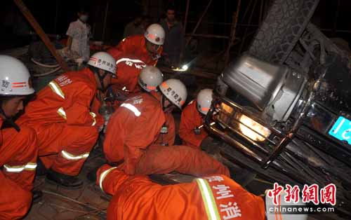 消防隊員對事故車輛進(jìn)行了緊急搶救,救援人員利用液壓擴(kuò)張器、切割機(jī)、鐵鍬等破拆器材對車體進(jìn)行強(qiáng)行破拆。22時16分,一名后座椅被困人員被成功救出,并及時送往醫(yī)院進(jìn)行搶救。23時37分,在當(dāng)?shù)孛窬、醫(yī)護(hù)人員的緊密協(xié)助下,經(jīng)過近2個小時的奮力營救,成功將最后5名被困人員全部救出。