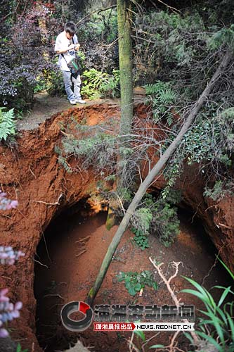 昨日(7日)下午,中南大學(xué)工程地質(zhì)與地質(zhì)災(zāi)害研究所副教授金福喜趕到烈士公園,仔細(xì)查看后說:“初步估計(jì),地下應(yīng)該有石灰?guī)r溶洞。”