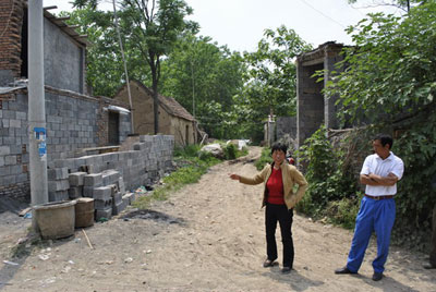 記者在現(xiàn)場(chǎng)看到,程家住在張家的北面,程家的大門對(duì)著張家的后墻,程、張兩家之間是一條村路,張家就是在自家屋后路上蓋的房砌的墻。