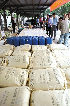 4月22日,東莞、廣州兩地警方聯(lián)合偵破了這起代號為“330A”特大武裝制毒販毒案,抓獲潘×斌等15人,搗毀制毒工場一個,繳獲K粉、冰毒等毒品287公斤、制毒原料羥亞胺1噸多,查獲美制式手槍和仿“64式”手槍各1支,扣押毒資250萬余元,作案車輛4輛。