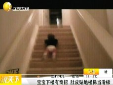 實(shí)拍:寶寶下樓有奇招 肚皮貼地樓梯當(dāng)滑梯