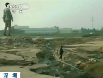 深圳河堤坍塌位移70米 路面出現(xiàn)巨大裂縫