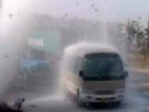 水管被撞當街噴射 小汽車扎堆洗澡發(fā)生追尾