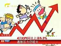 4月CPI漲5.3%漲幅回落 通脹壓力仍然較大