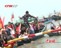 【解說(shuō)詞】記者在現(xiàn)場(chǎng)看到,插著鮮艷的紅旗,鏗鏘有力的鼓聲,整齊的劃槳?jiǎng)幼,盲人代表?duì)并不遜色于其他的龍舟代表隊(duì)。隨著鼓手的節(jié)奏,盲人隊(duì)員奮力劃動(dòng)船槳,鼓手,舵手,盲人隊(duì)員和志愿者配合得都很默契。