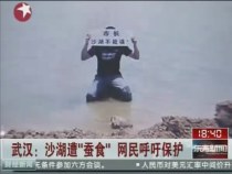武漢市民跪水中舉牌呼吁保護(hù)沙湖