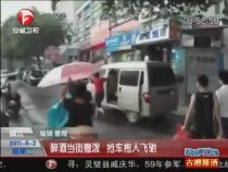 實拍醉酒男子強行開走女子面包車將其拖行