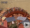 【解說】眼前這片花海是由30萬盆菊花組成的,8日江西省昌市第23屆菊花展開幕,3萬平方米的花海吸引了許多市民來此參觀,菊花展中有幾個(gè)造型獨(dú)特的主題展臺(tái)成為一大亮點(diǎn)。
