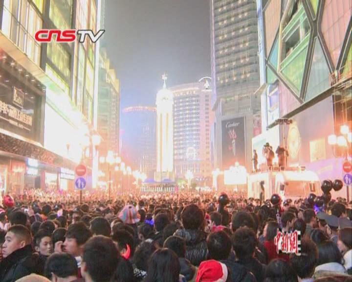 【解說(shuō)詞】據(jù)了解,近年來(lái)每逢圣誕平安夜,便會(huì)有大量的山城市民自發(fā)的在重慶標(biāo)志性建筑物解放碑守候鐘聲。雖然今年重慶主城部分道路實(shí)施了交通控制,但人們熱情不減,仍有上十萬(wàn)市民涌入解放碑共度圣誕節(jié)。