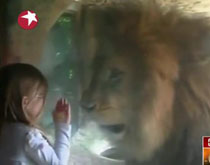 實(shí)拍:三歲女童面對(duì)雄獅不畏懼
