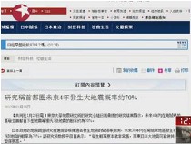研究稱日本首都圈未來4年大地震概率約70%