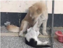 貓狗一家親 貓認(rèn)狗做“奶媽”