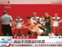 球員邊線救球背對(duì)籃框隨手一扔神奇命中