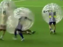 特殊足球賽:球員身上套個球 踢“彈力足球”