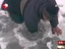另類捕魚 直接把手臂伸進(jìn)冰窟窿當(dāng)魚鉤