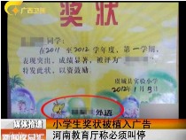小學生獎狀植入廣告 河南教育廳稱必須叫停