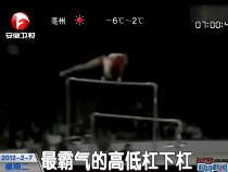 最霸氣的高低杠下杠:下杠瞬間高低杠全倒