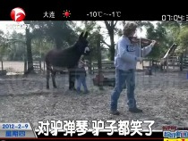 樂(lè)手對(duì)驢拉小提琴 結(jié)果驢“笑”了