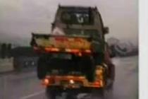 兩輛小貨車高速上玩“疊羅漢”為省通行費(fèi)