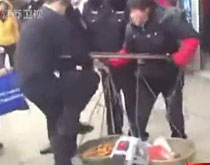 實拍:城管執(zhí)法 當街踩爛女攤販金桔筐
