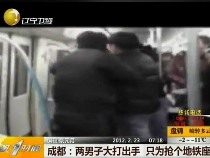 實(shí)拍:為搶地鐵座 兩男子大打出手