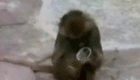可愛猴子照鏡子被自己嚇得抓狂