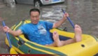 天津市民雨中遛狗水中沖浪展現(xiàn)樂觀