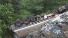 湖北載23噸汽油罐車側翻懸崖1死3傷
