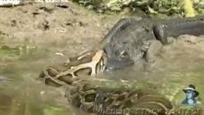實拍:巨蟒大戰(zhàn)食人鱷相互撕咬 都成精了