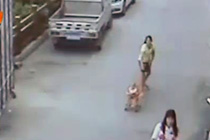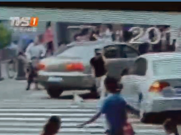 俄羅斯女子軍展上偷開(kāi)裝甲車撞墻